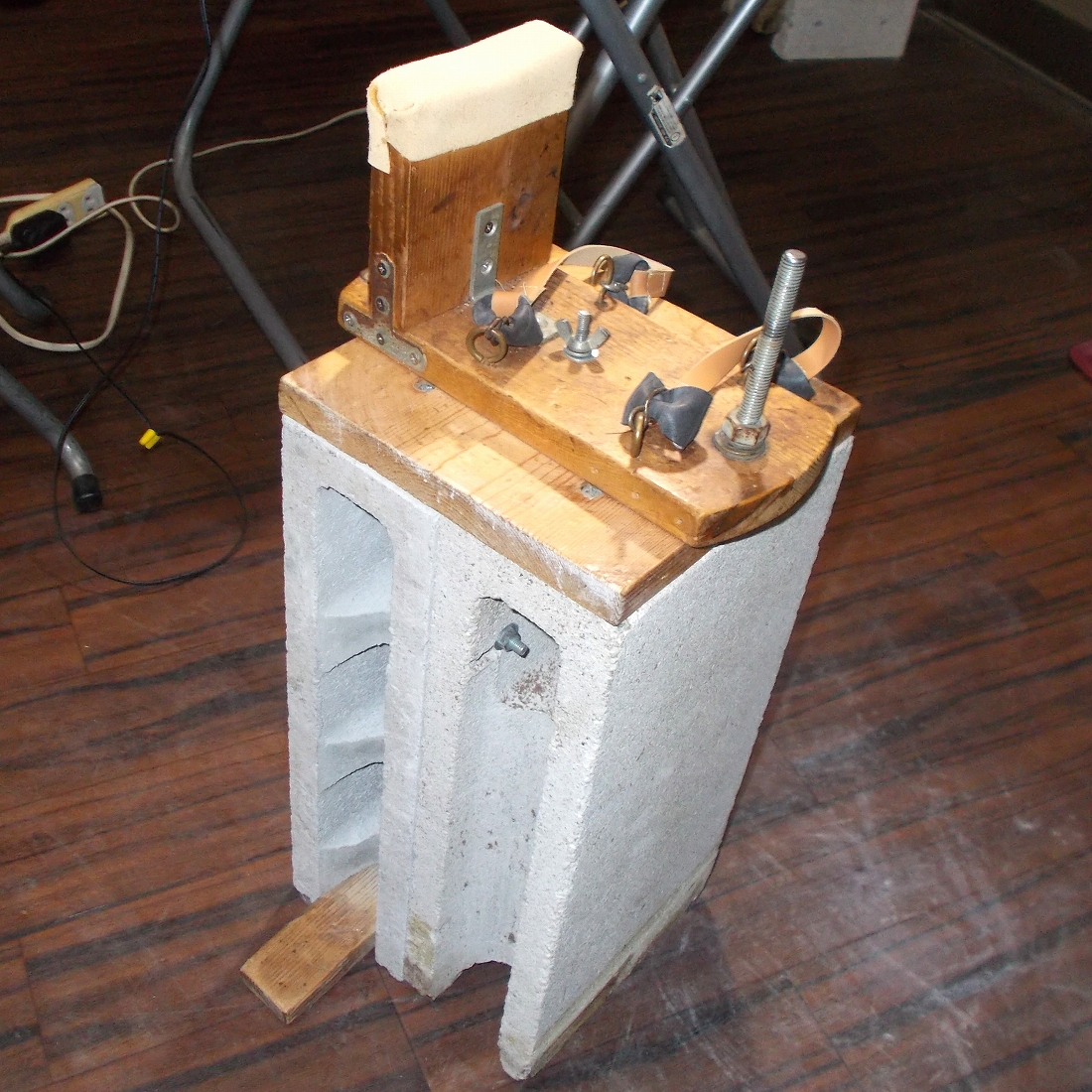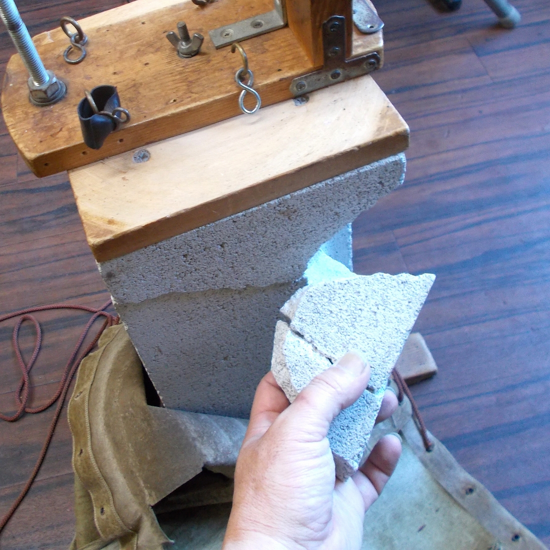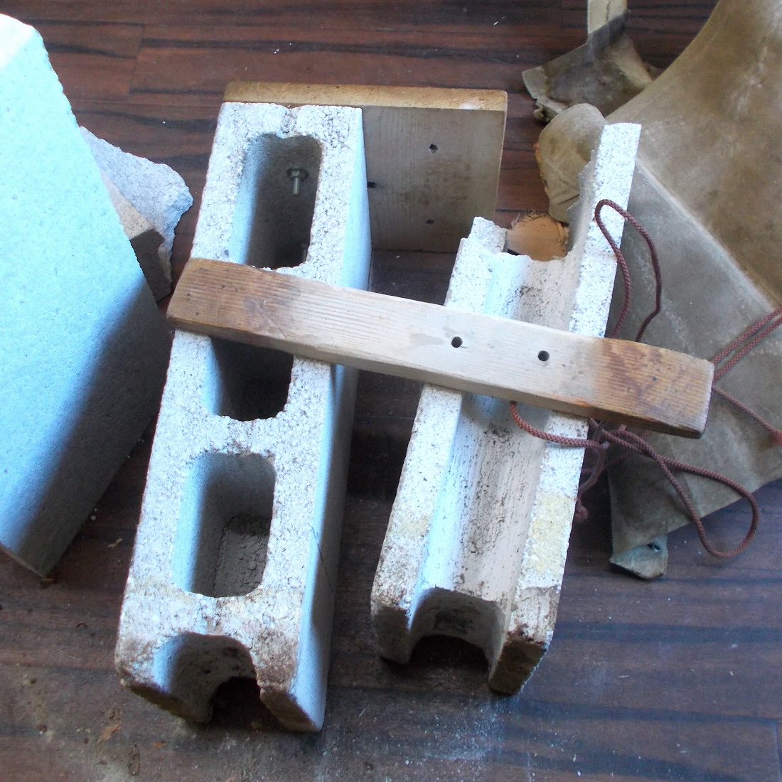 仕事納めの前に、作業台の土台のコンクリートブロックが割れてしまっていたので、修理をしました。靴学校の頃に自作したので、かれこれ20年来の付き合いになる相棒のひとつです。