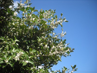 一般に月曜日は平日ですが、私には多忙な休日になります。私事と仕事に忙殺された後の休み明け、ここで気が重くならず、心機一転! で取り掛かれるのは「好きなことをやっている」からです。今日やることを確認しながら、少し入れ込みながらの出勤時、濠川沿いで、不意に秋の花の香りが漂ってきました。ギンモクセイ(銀木犀)です。金じゃなくて銀。その奥ゆかしさに思わずニンマリ。気負っていたのをたしなめられました。