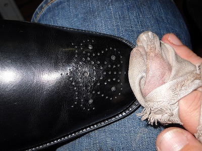 ちょっとした仕事の合間に靴磨き。ヒマなわけではなく、ちょっとした小物のサンプルを作ってから、お客様の靴を仕上げていて思いついただけです。普段はそこまでしないのですが、寒くなるとワックスの乗りが良くなるので、ついポリッシュまでしてしまいました。