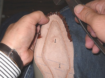 中底加工は靴の要・・・・底付けの始まりであり、靴の運命を担っている作業なのです。作業中にそんなことばかり考えているかというと・・・・考えてます。それはハンドソーン・ウェルテッド製法が現存する要因のひとつだからです。