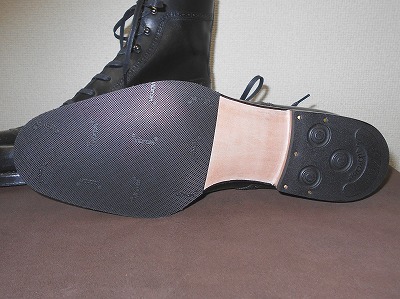 ヒールは全ゴム、ハーフラバーソール張りのご注文でした。ビブラム社で揃えてみましたが、靴の雰囲気作りによく貢献してくれました。